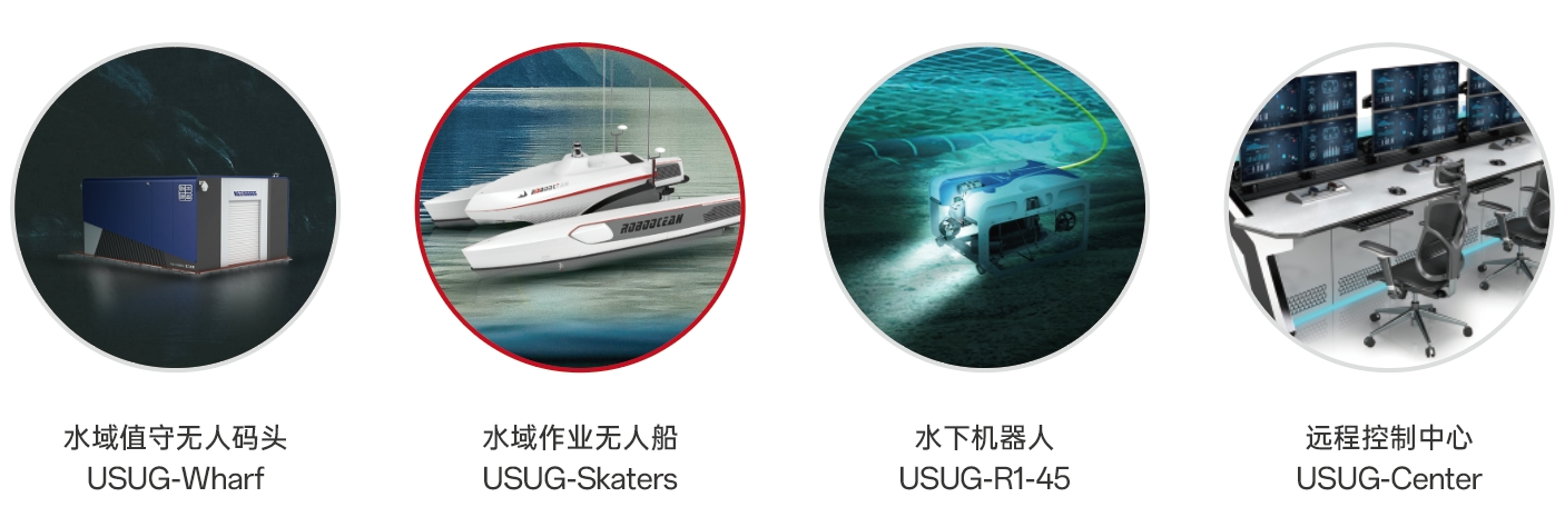 USUG水域无人值守作业平台是一款支持常态化无人值守的多功能水面水下一体化作业系统,可在水质监测、生态保护、资源管理等多个行业应用。该平台以无人船为核心,与无人码头和水下机器人(ROV)自由组配,分系统可根据具体需求灵活配置,支持搭载多种声光磁传感器及作业工具,以满足深水测深、水工结构检查、水文测量等多元需求,全面实现24/7连续无人监控,显著降低运营成本及现场人员风险,同时最小化环境影响。