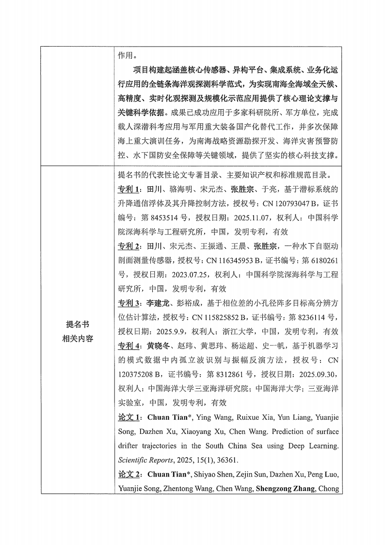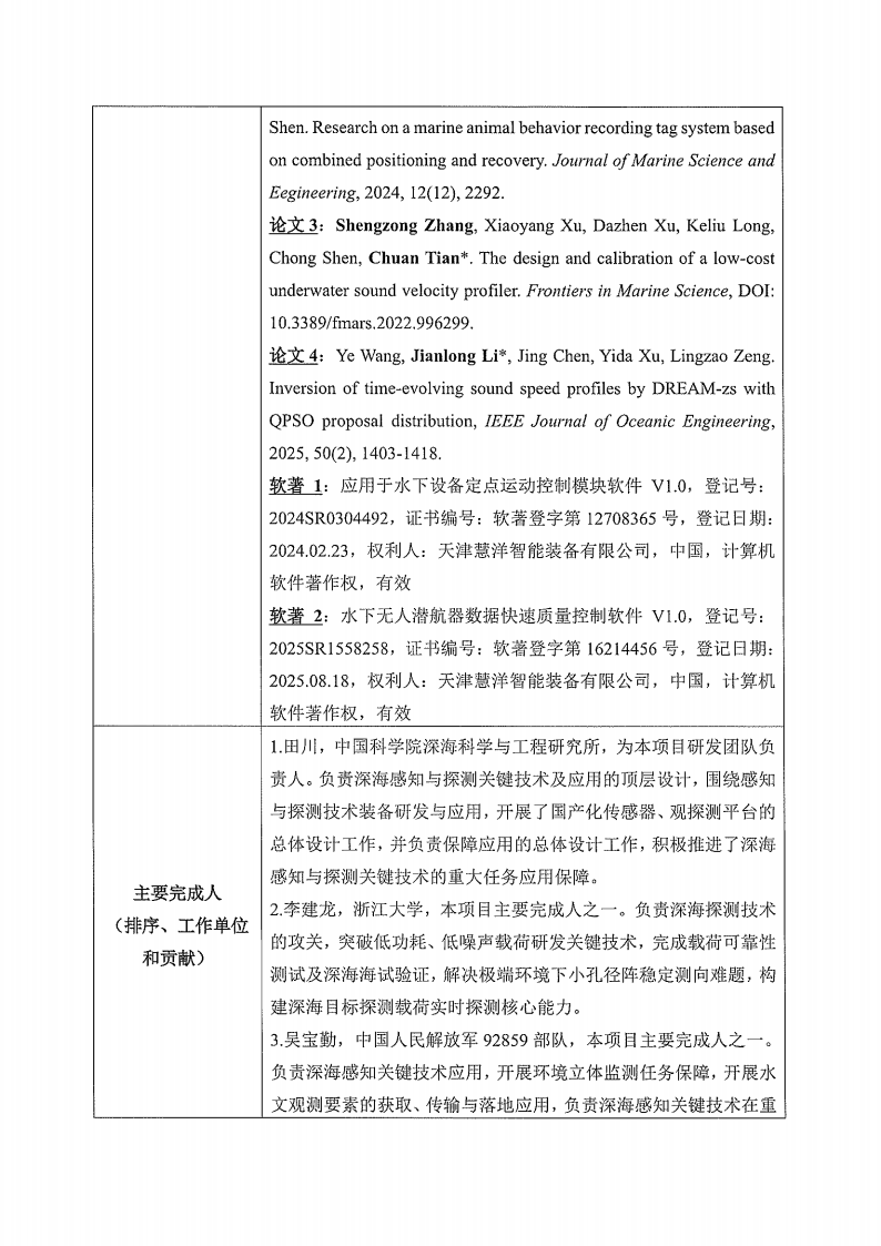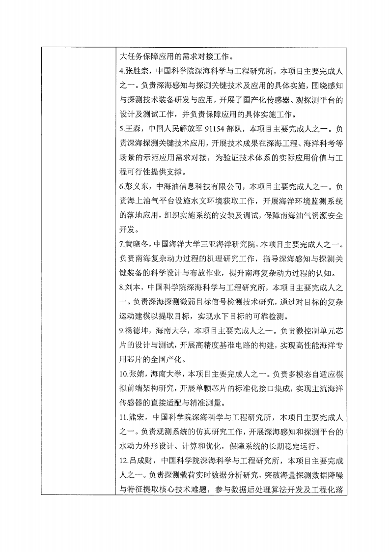 根据海南省科学技术厅发布的《海南省科学技术厅关于2025年度海南省科学技术奖提名工作的通知》要求,我司参与完成的“深海感知与探测关键技术及应用”成果拟通过海南省三亚市人民政府推荐申报2025年度海南省科学技术奖,现予公示。
